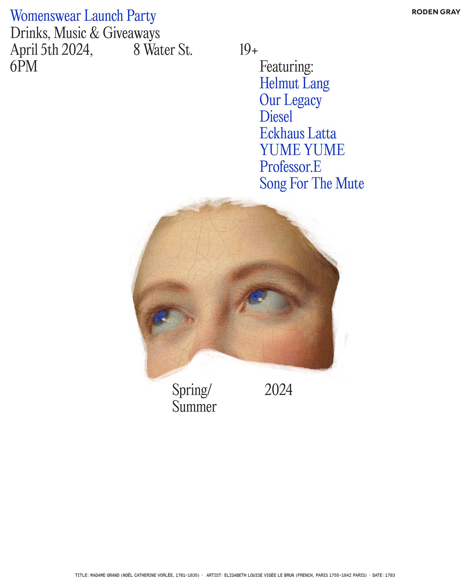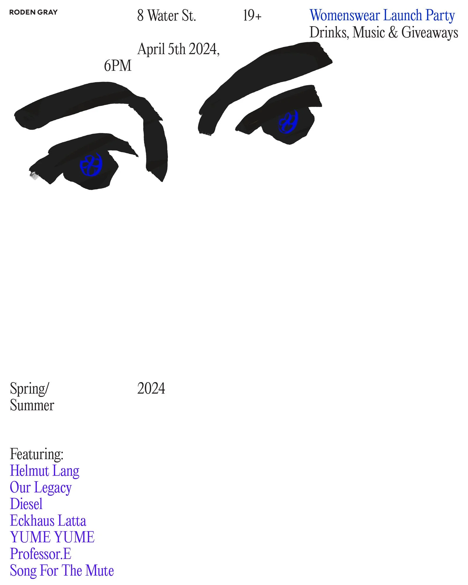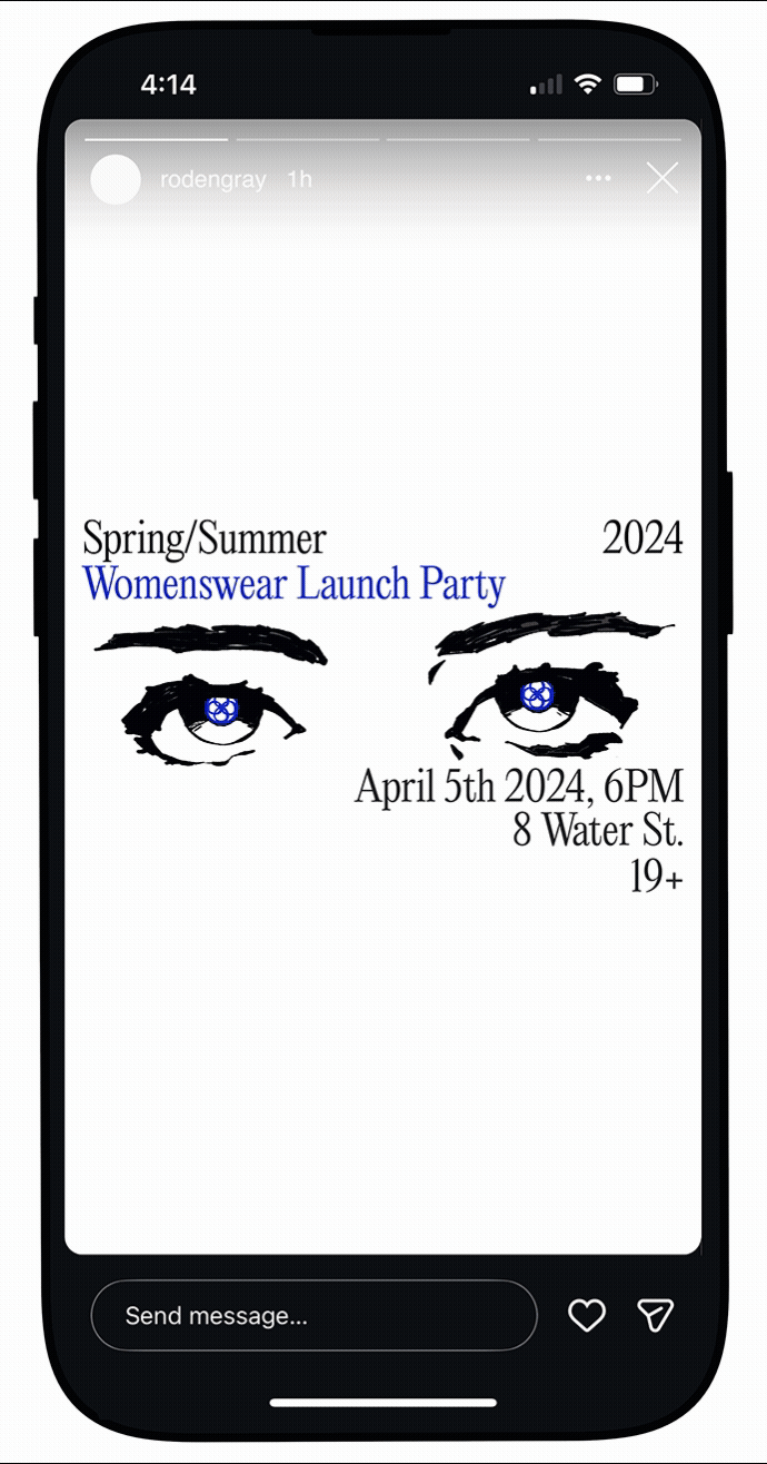The introduction of womenswear tested the visual elasticity of the Roden Gray aesthetic. A loose grid vcarried through posters and social imagery comprised of pre-existing brand elements stretches and accommodates upon the arrival of womenswear. A diversity of art styles references the fluid nature of womenswear, and it’s inclusion into Roden Gray library.
